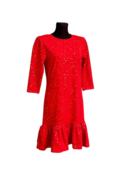 Kleit "Punane kuldsete fooliumtäppidega", suurus 38